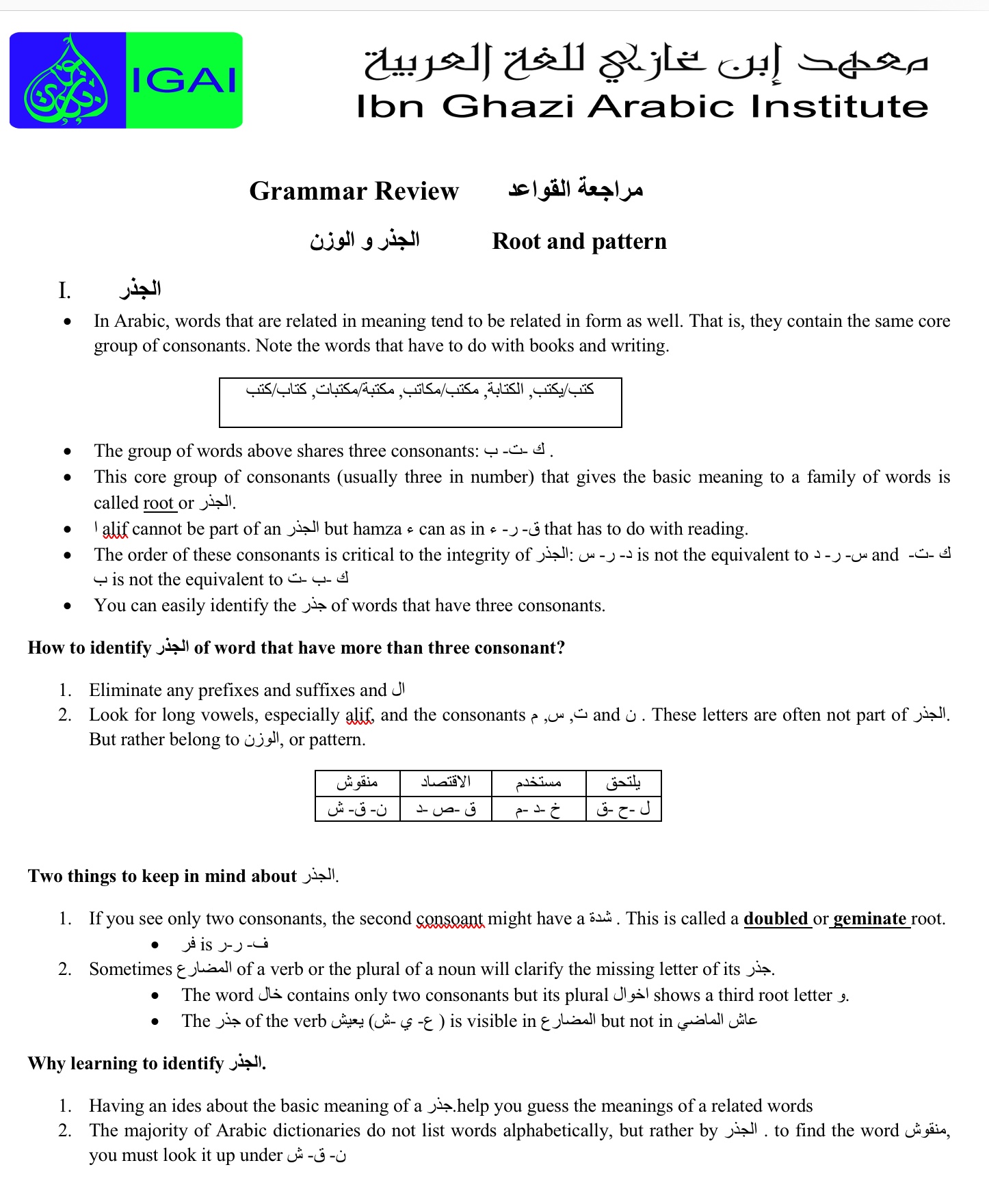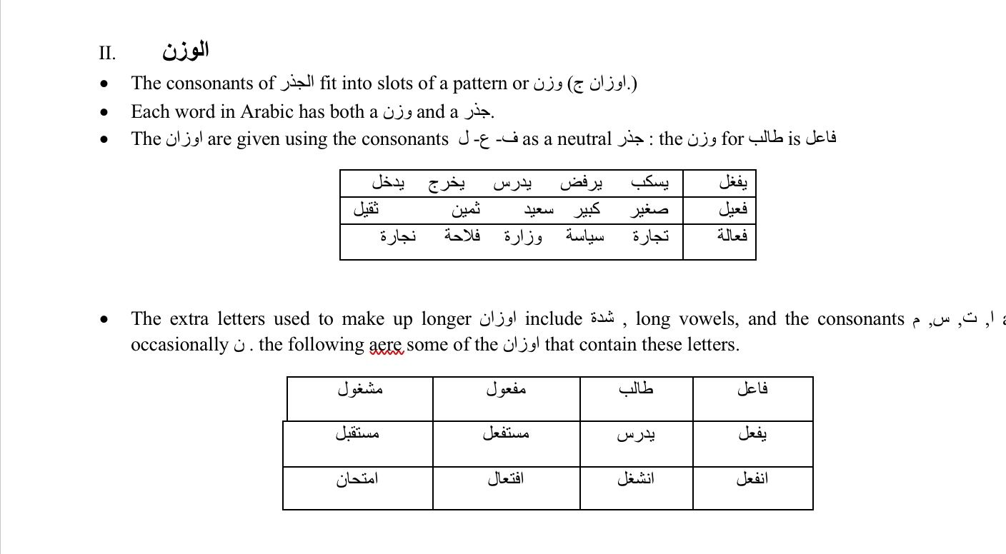 الجذر و الوزن Root and pattern By Fouad Touzani|2022-05-14T20:52:45+00:00May 14th, 2022|Uncategorized|0 Comments Share This Story, Choose Your Platform! facebooktwitterlinkedinreddittumblrpinterestvkEmail About the Author: Fouad Touzani Related Posts The sound and weak verbs in Arabic language The sound and weak verbs in Arabic language The comparative and superlative افعل التفضيل The comparative and superlative افعل التفضيل Expressing similarity or likeness in Arabic مثل, ك, كما, كان Expressing similarity or likeness in Arabic مثل, ك, كما, كان The Types of Sentences in Arabic: الجملة الفعلية والجملة الإسمية The Types of Sentences in Arabic: الجملة الفعلية والجملة الإسمية The Role of the American President in Establishing US Foreign Policy: The Case of the Middle East and North Africa The Role of the American President in Establishing US Foreign Policy: The Case of the Middle East and North Africa Leave A Comment Cancel replyComment Δ This site uses Akismet to reduce spam. Learn how your comment data is processed.
